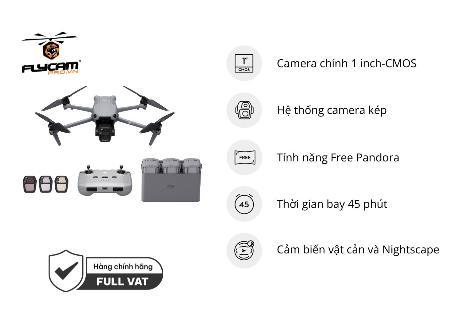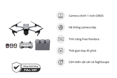 Flycam trang bị camera kép được thiết kế dành riêng cho lĩnh vực nhiếp ảnh, du lịch, DJI Air 3S tích hợp một bộ công nghệ tiên tiến. Với camera chính CMOS 1 inch và camera tele trung bình 70 mm, mỗi camera có tới 14 điểm dừng dải động, Air 3S chụp ảnh phong cảnh, chân dung và nhiều ảnh khác với độ chi tiết tuyệt đẹp. Cả hai camera đều hỗ trợ tính năng toàn cảnh miễn phí mới, cho phép lựa chọn phạm vi chụp linh hoạt. Các điểm nổi bật mới bổ sung bao gồm cảm biến chướng ngại vật Nightscape và Smart RTH thế hệ tiếp theo để tăng cường độ an toàn khi chụp ảnh ban đêm. DJI Air 3S được thiết kế để tối đa hóa mọi khoảnh khắc trên không theo mọi cách. Đừng bỏ lỡ để sở hữu ngay một chiếc flycam độc đáo này.