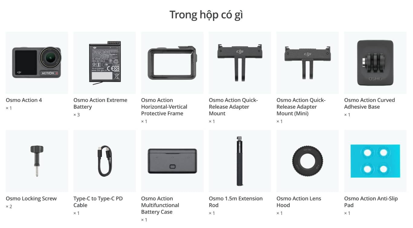 DJI Osmo Action 4 sở hữu chất lượng quay video 4K/120fps, cảm biến hình ảnh CMOS 1/1,3 inch, quay chụp ở góc siêu rộng 155° và chống nước ở độ sâu 18m.