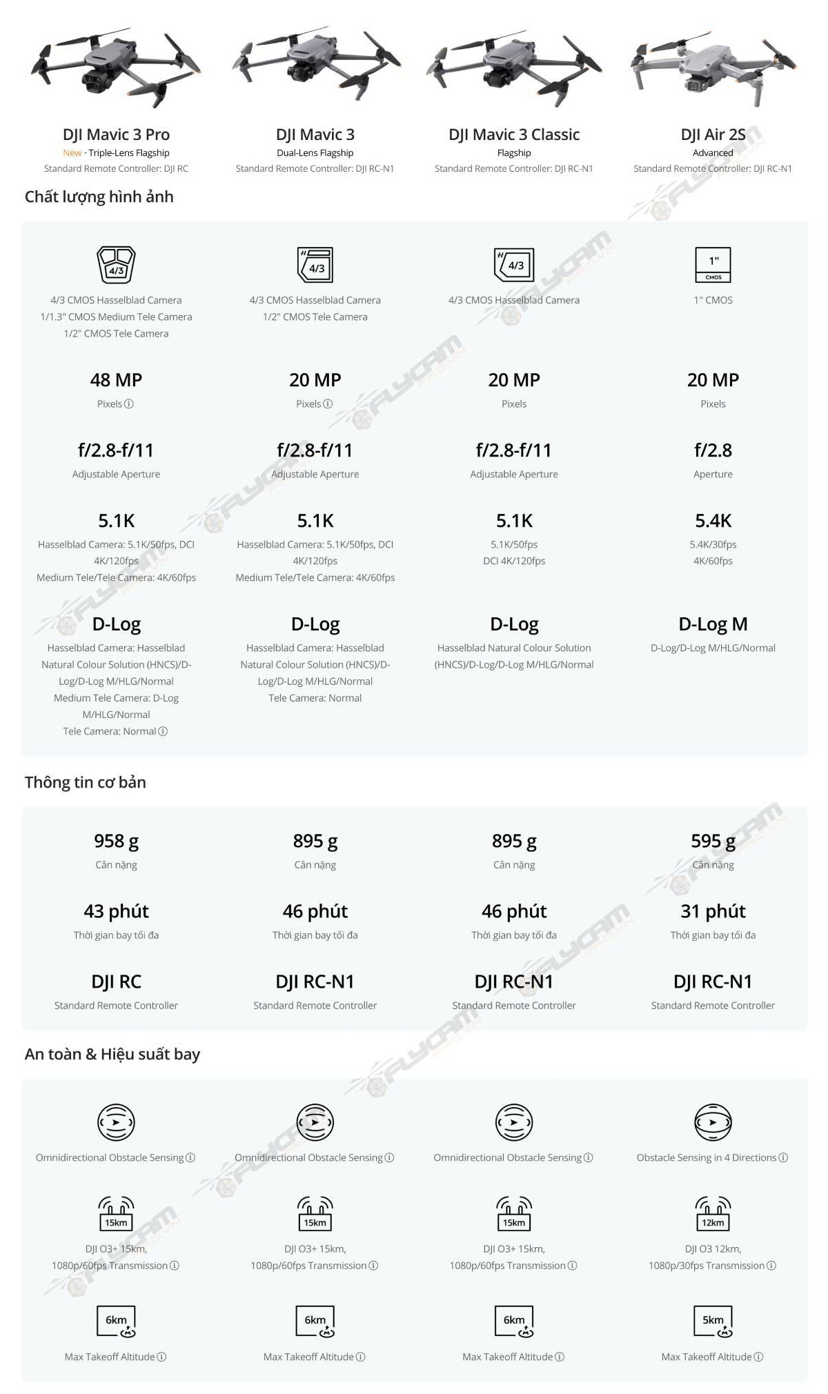 | Trọng lượng cất cánh tối đa | Mavic 3 Pro: 958 g Mavic 3 Pro Cine: 963 g |