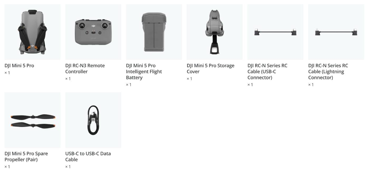 - DJI RC-N Series RC Cable (USB-C Connector) × 1