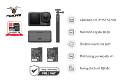 - Hiệu suất và Trải nghiệm Người dùng Nâng cao: Osmo Action 5 Pro tự hào với hiệu suất pin được nâng cấp, mang đến thời gian hoạt động lên đến 240 phút, mở ra kỷ nguyên thời lượng pin kéo dài 4 giờ cho máy ảnh hành động. Máy hỗ trợ chế độ Theo dõi Chủ thể, phát hiện vị trí của chủ thể một cách thông minh và tự động điều chỉnh bố cục để giữ chủ thể ở giữa mỗi khung hình, ngay cả khi không có gimbal. Được trang bị đồng hồ đo áp suất tích hợp mới, Action 5 Pro ghi lại và hiển thị độ sâu và độ cao của nước theo thời gian thực, đồng thời tự động bắt đầu ghi hình khi xuống nước và dừng ghi hình khi lên khỏi mặt nước. Nó cũng hỗ trợ Wi-Fi 6.0 và USB 3.0 tốc độ cao, [7] với tốc độ truyền không dây lên đến 80 MB/giây, [8] cải thiện đáng kể trải nghiệm truyền ảnh/video.