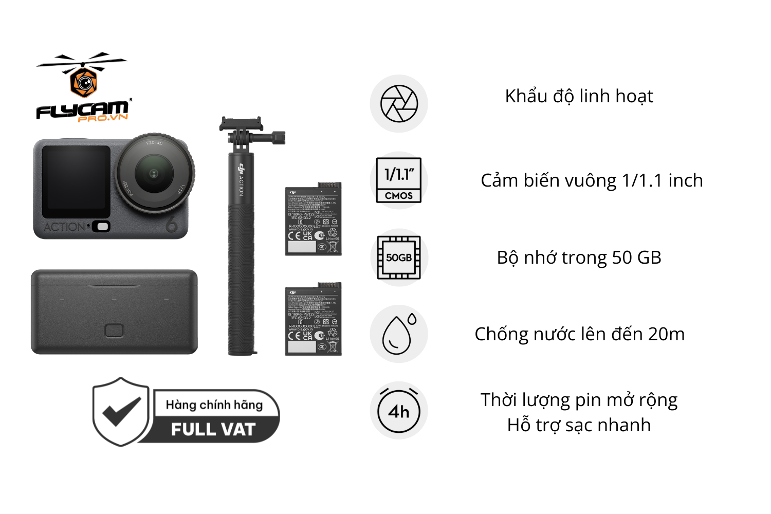 DJI Osmo Action 6 được trang bị 50GB bộ nhớ trong, cho phép bạn ghi hình liên tục mà không cần thẻ nhớ. Đây là giải pháp lý tưởng cho những chuyến du lịch, vlog hay các hoạt động ngoài trời, nơi việc mang theo thẻ nhớ dự phòng có thể bất tiện.