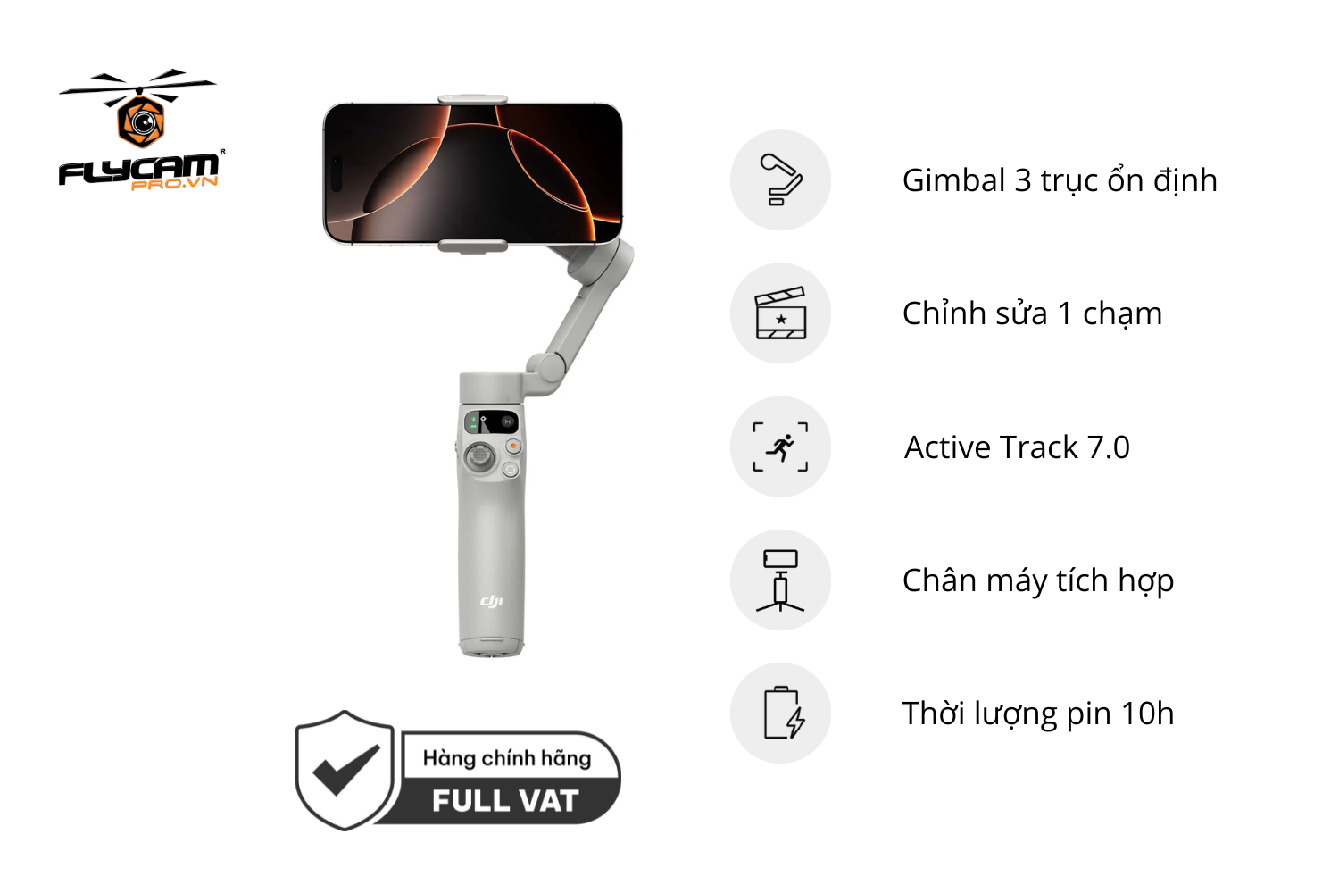 Hãy đến ngay FlycamPro, đơn vị ủy quyền bảo hành và sửa chữa độc quyền DJI tại Việt Nam, để sở hữu DJI Osmo 7. Với thiết kế nhỏ gọn, công nghệ chống rung thế hệ mới và tính năng theo dõi thông minh, Osmo 7 giúp bạn ghi lại những khoảnh khắc tuyệt vời một cách chuyên nghiệp và dễ dàng. Tại FlycamPro, chúng tôi không chỉ cung cấp sản phẩm chính hãng mà còn đảm bảo dịch vụ bảo hành và hỗ trợ kỹ thuật chuyên sâu. Đừng bỏ lỡ cơ hội trải nghiệm chiếc gimbal đẳng cấp này – ghé ngay cửa hàng để nhận tư vấn tận tình cùng nhiều ưu đãi hấp dẫn
