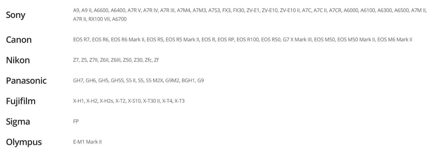 Danh sách máy ảnh tương thích